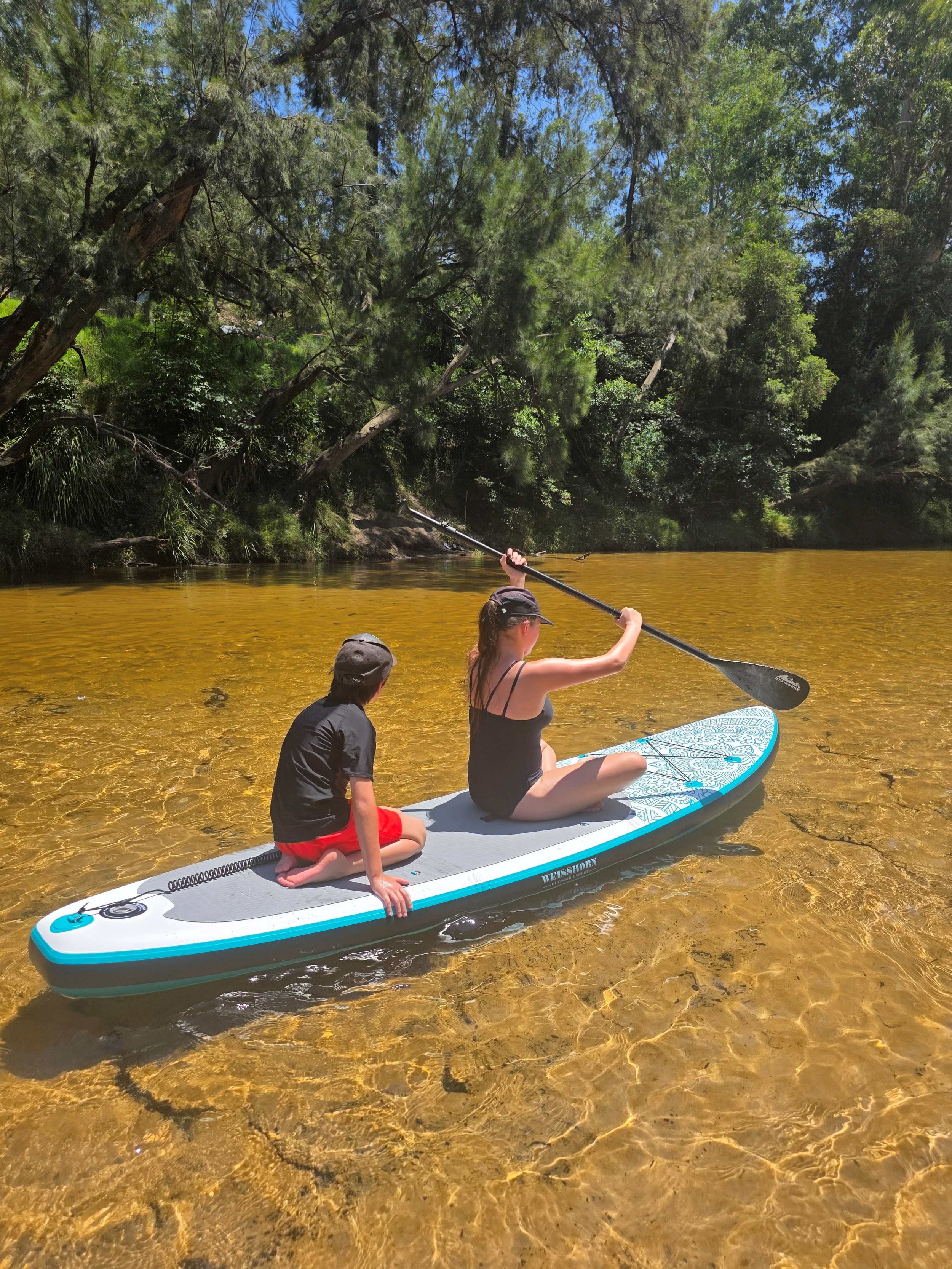 If you’re lucky, I’ve been told that you might even spot native wildlife such as platypus, which are sometimes seen in this area. We brought along our paddle board (a Christmas gift that has now officially been claimed by our son 😄), and it was perfect for gliding across the calm sections of the river.