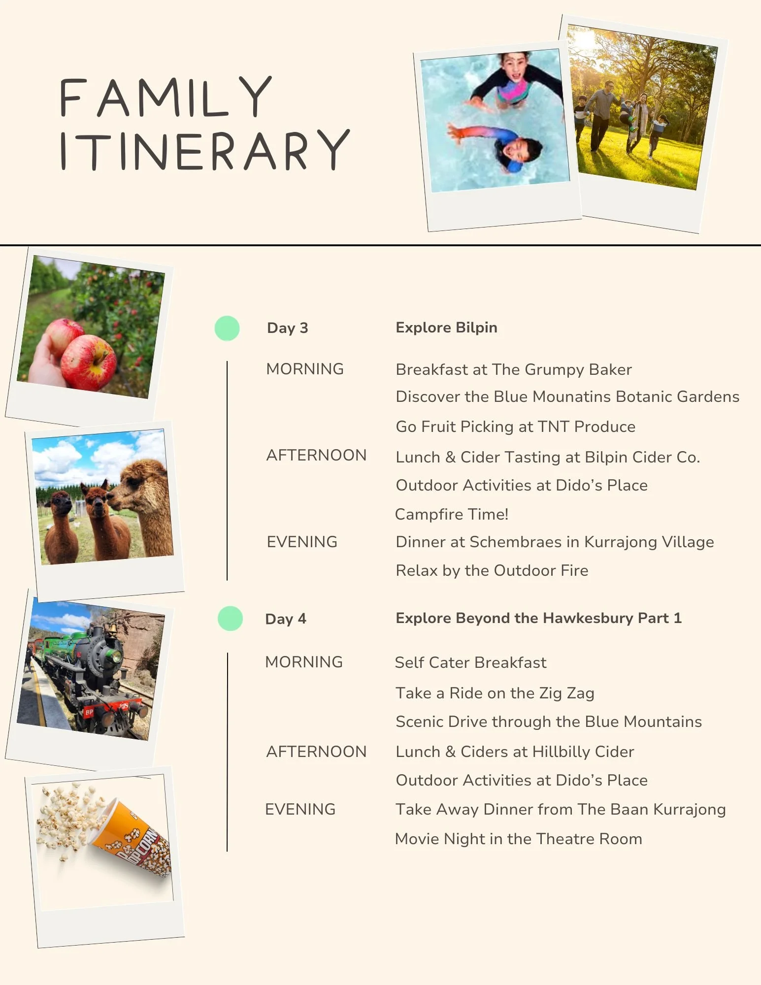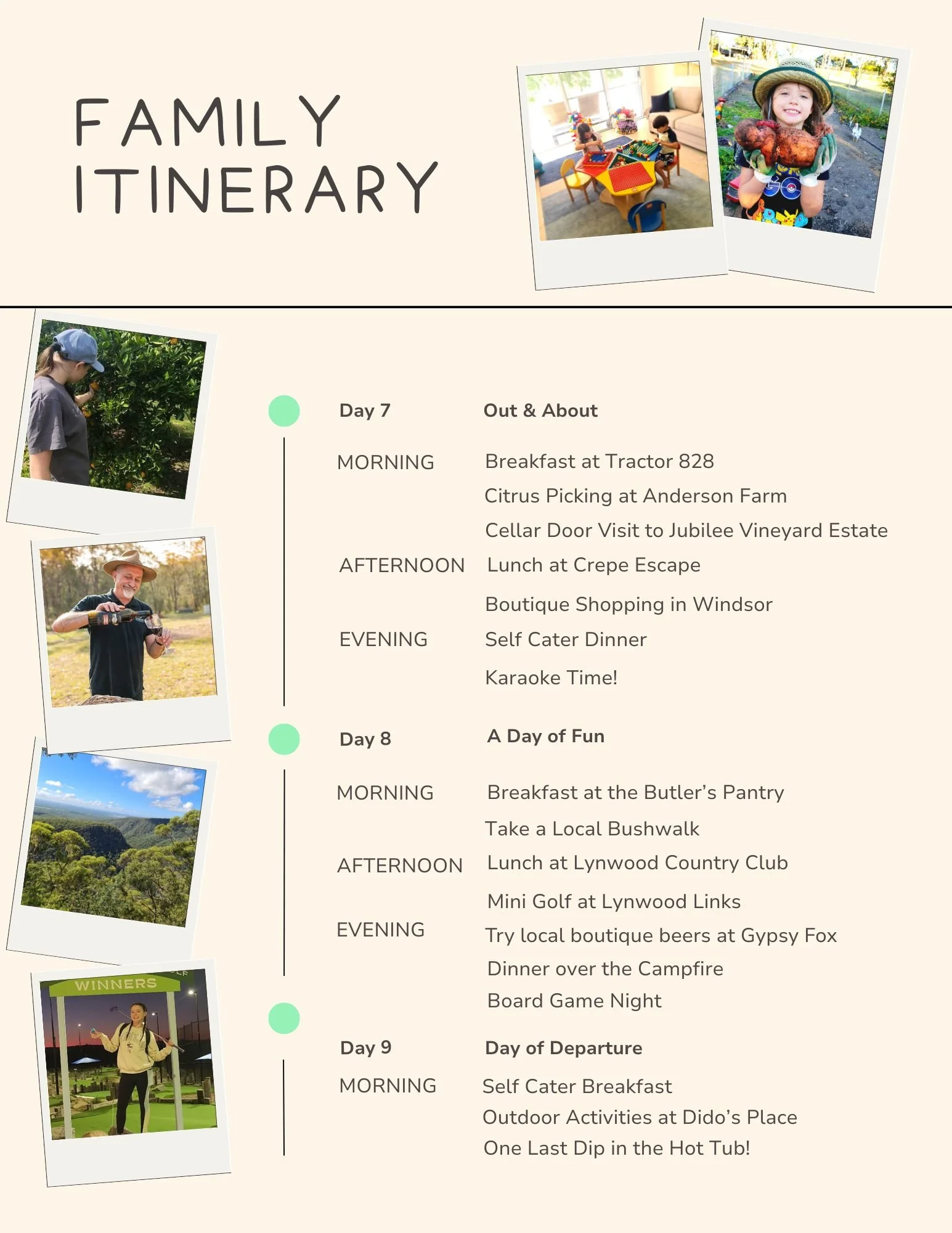 To give you a taste of what your stay could look like, here’s a sample itinerary you can mix and match to suit your pace. And if you'd rather leave the planning to us, we're more than happy to create a personalised itinerary just for you!